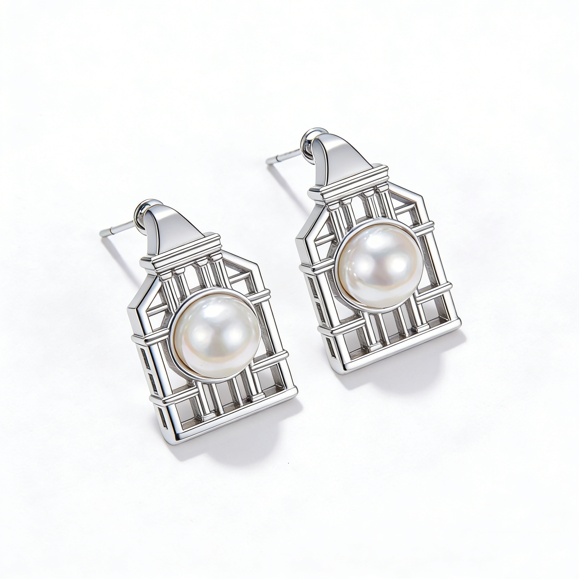 Inspired by traditional Chinese lattice design, these elegant pearl stud earrings blend cultural artistry with timeless sophistication. Each piece features lustrous pearls set within a delicate geometric window pane framework, creating an understated yet striking aesthetic. Perfect for adding refined elegance to both everyday wear and special occasions, these studs celebrate heritage craftsmanship while maintaining a modern sensibility. A versatile accessory that speaks to refined taste and cultural appreciation.
