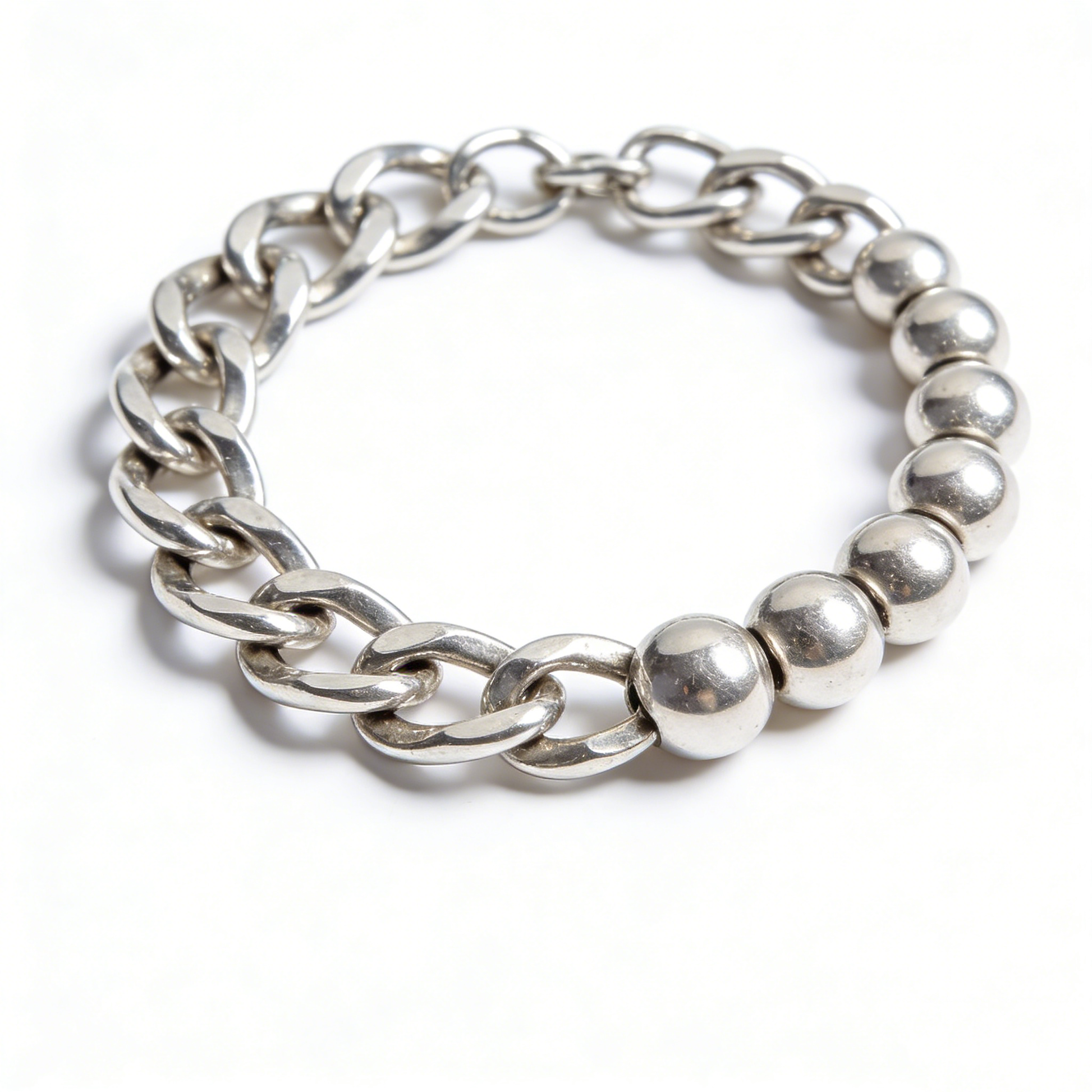 Curb Chain Bead Patchwork Vintage Silver Bracelet