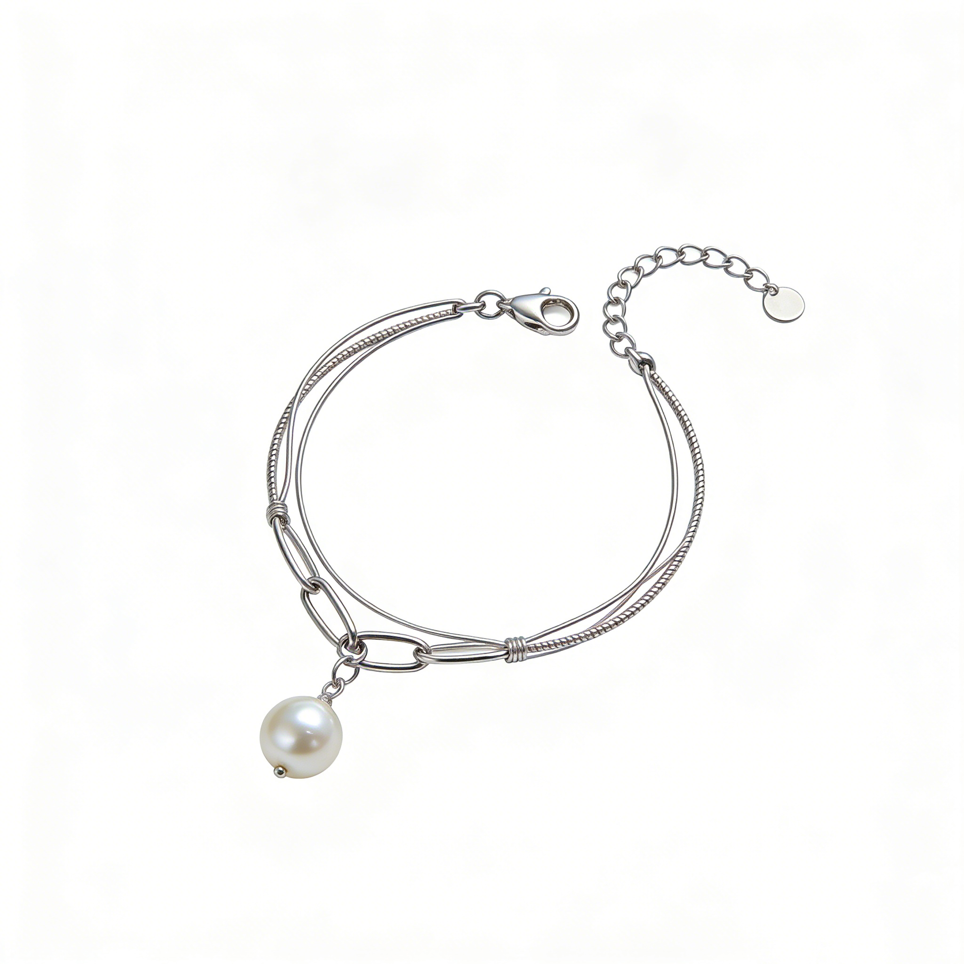 Elevate your everyday elegance with this refined double-layer bracelet, featuring delicate thin chains adorned with a lustrous pearl pendant. The adjustable design ensures a perfect fit for any wrist, while the polished silver finish adds timeless sophistication to both casual and formal occasions. A versatile piece that effortlessly transitions from day to evening, this bracelet combines minimalist aesthetics with understated luxury for the discerning wearer.