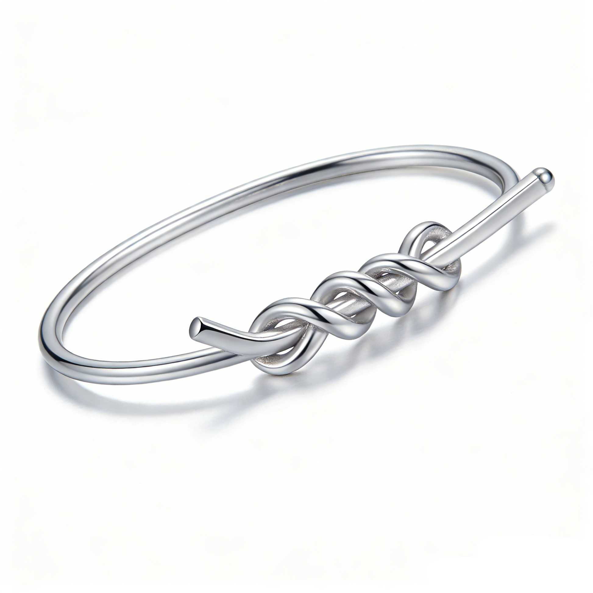 Elevate your everyday elegance with this refined silver bangle, featuring a distinctive knotted design that captures light beautifully. The open silhouette offers versatile styling—wear it solo for understated sophistication or stack it with other pieces for a curated look. Crafted with meticulous attention to detail, this minimalist accessory transcends trends, making it a timeless addition to any jewelry collection. Perfect for those who appreciate subtle luxury and contemporary design.